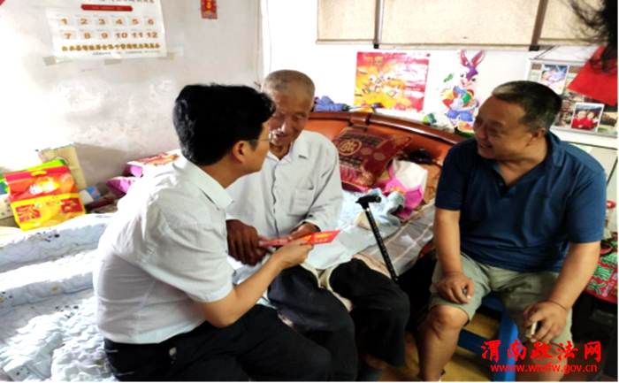 渭南政法网(通讯员 张李娜)7月31日,白水县委常委、政法委书记武师民先后来到城关街道办退役现役军人王恩荣、王昊的家中走访慰问,对他们为国家和部队做出的贡献表示感谢,并为他们送上慰问金,同时代表县委、县政府向他们致以节日的问候和衷心的祝福。