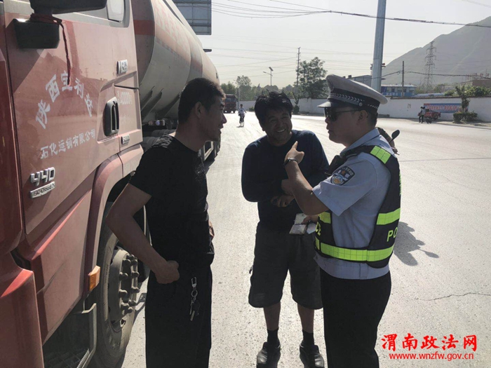 二、强化源头管理,消除安全隐患。大队积极联合交通、安监等相关部门积极开展交通安全隐患大排查活动,切实从源头上预防和减少道路交通事故。一是深入辖区运输企业进行排查,排查是否存在超高、超长、超宽、超限问题的货车,检查货车硬件条件等装载情况和资格条件,对检查出的问题进行逐一清理,督促企业负责人限期整改,对整改不积极、态度不认真的拉入车辆管理黑名单,对在整改期限内上路运营的一旦发现,立即严查,绝不姑息。二是组织警力深入辖区重点路段、事故多发、频发等路段开展交通安全隐患排查工作,重点排查道路通行安全条件差、安全防护设施缺失、急弯陡坡、连续长下坡、易滑坡路段等易发生货车制动失效、车辆翻坠和碰撞等高危隐患路段隐患,完善道路交通设施设备,增设警示标牌,警示驾驶人谨慎驾驶,确保货运安全。