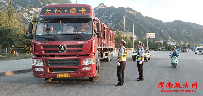 三、强化路面管控,严查严处整治。大队根据货车行车路线和时间规律,结合货车日常交通违法行为和交通事故分布特点:一是加大对辖区货车通行量最大的310国道和华金公路重点路段的警力投放力度,确保重点路段24小时都有警力管控。二是设立固定执勤卡点,明确辖区中队长为第一责任人,重点整治“三超两驾”即超载、超限、超速,酒驾醉驾,逆向行驶、闯红灯、违法超车、会车、疲劳驾驶、报废车上路、无牌无证、假牌套牌、未年检、改装改型等违法行为。三是充分发挥电子警察监控设备的作用,加大对辖区道路视频巡查管控力度,采取固定检查、突击抽查、流动巡查三结合的方式,加强重点路口路段的巡逻防控。