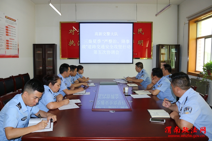 渭南政法网(高新交警讯)8月5日,高新交警大队组织召开三秦夏季“严整治、降事故”道路交通安全攻坚行动第五次协调会。会议由大队长王晓文主持,大队各部门负责人参加会议。