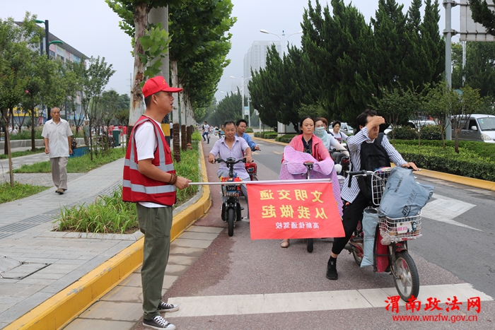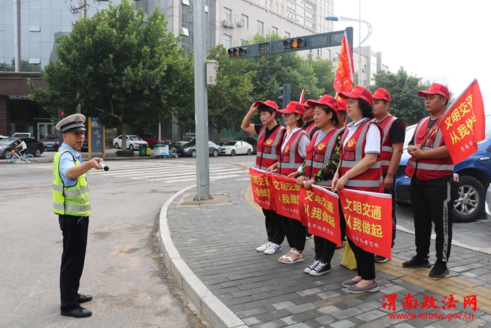 渭南政法网(高新交警讯)为全力创建文明城市,做好交通劝导志愿服务活动,8月7日,高新交警大队领导高度重视,安排高峰岗执勤民警与驾校志愿者在城区贸易十字、花园十字、市局十字3个路口,开展文明交通劝导志愿服务活动。