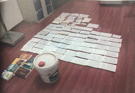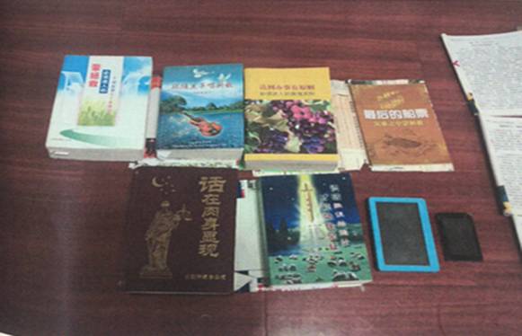 图为在郑美仑住处查获的邪教宣传品