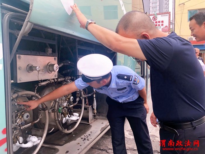 检查中,民警樊卓首先为驾驶司机讲了运行车辆不能超员、超速,急弯缓行,避免发生交通事故,确保乘客生命财产安全。其次对客运车车辆一一检查、排查,重点检查了车辆是否超员、车辆安全设置、灭火设施是否完好、车子轮胎是否完好、灯光效果是否正常、旅客行李摆放是否安全等,通过检查,要求工作人员要严格安检,杜绝非法、易燃易爆物品的运输,同时要加强内部安全巡查,注意发现各类安全隐患,对可疑人员及物品要严格盘查,强化了司乘人员的安全意识,有效预防了道路交通事故发生。