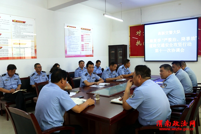 渭南政法网(高新交警讯)三秦夏季“严整治、降事故”道路交通安全攻坚行动已进入最后阶段,为全力做好攻坚行动工作,9月9日上午,高新交警大队召开三秦夏季“严整治、降事故”道路交通安全攻坚行动第十一次协调会,会议由大队长王晓文主持,各中队负责人参加了会议。
