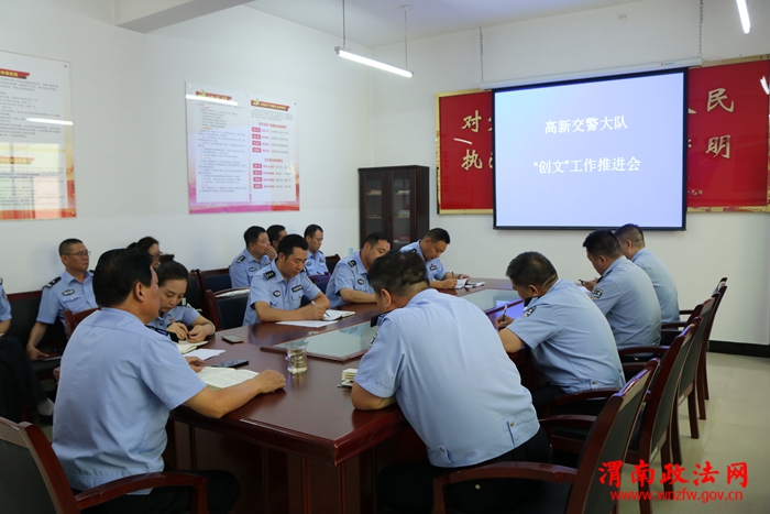 渭南政法网(高新交警讯)创建全省全国文明城市活动启动以来,高新交警大队主动作为,全力以赴,立足职能,强化措施,采取四项举措,持续深入开展道路交通秩序专项整治工作,扎实推进创建工作有序开展。9月9日,高新交警大队召开“创文”工作推进会,会议由大队长王晓文主持,各中队负责人参加会议。