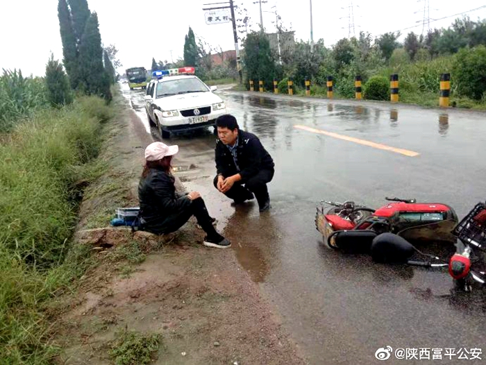 【女子骑车不慎摔倒 民警紧急救助】9月11日,富平公安留古派出所民警接群众报警称:一女子骑车不慎摔倒,需要救助。民警火速赶往现场,查看该女子的伤情,了解情况后,民警立即联系120救护车,及时将该女子送往医院进行救治。