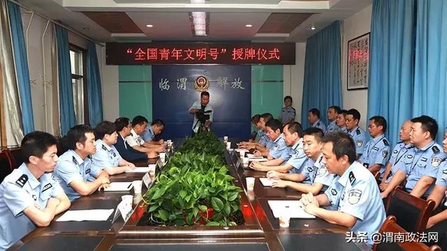 在授牌仪式上,解放路派出所长张渭斌、辛市派出所长马辉介绍了派出所的基本情况,回顾了青年文明号的创建历程,介绍了创建活动的经验做法,省厅及团市委领导 充分肯定了两个先进集体的工作成绩, 高度赞扬了全体一线民警忠诚履职、务实担当的渭南公安铁军精神。