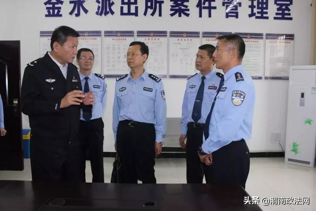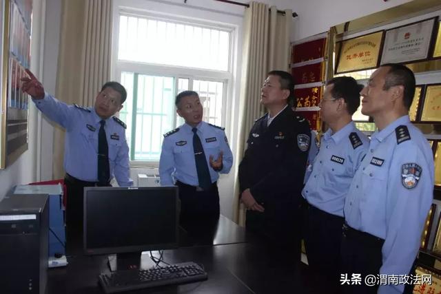 9月16日,陕西省公安厅治安局三处处长陈西平一行两人在渭南市公安局治安支队副支队长张永平等人的陪同下来到合阳县公安局金水派出所,对推荐候选的“坚持和发展枫桥经验优秀公安派出所”创建活动进行实际考核检查。
