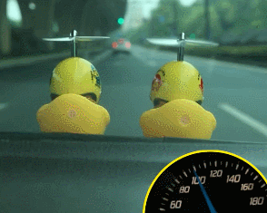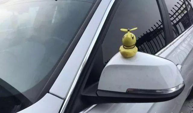 它常出没于私家车的后视镜、引擎盖、车顶…车一开动,一排小黄鸭随风旋转,