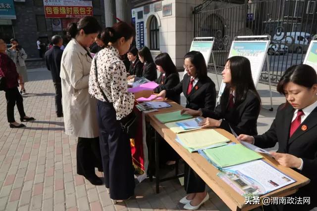 在社区。渭南中院“巾帼志愿服务队”的女法官干警们拿着扫黑除恶、刑事、民事、行政案件诉讼常识等宣传单(册)深入幸福城社区,向社区群众进行法律常识宣传和法律咨询服务。女法官们认真倾听群众们在生活中遇到的法律问题,根据法律规定耐心解答提出建议,受到了社区群众的交口称赞。
