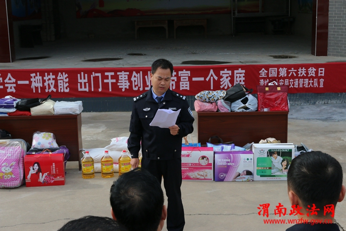 渭南政法网(澄城交警讯)春华秋实、金风送爽,10月17日澄城县公安局交通管理大队按照县委、县政府总体要求,在交道镇杨家村开展全国第六个扶贫日活动,通过送政策、送信息、送温暖、送技术等帮扶措施,进一步激发贫困户的内生动力,提升脱贫质量。