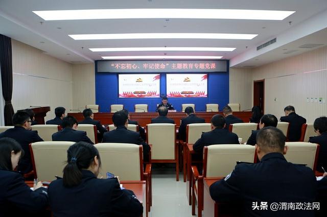 渭南政法网(市公安局讯)按照渭南市公安局党委关于“不忘初心、牢记使命”主题教育安排部署,10月16日,渭南市公安局党委委员、政治部主任杜少平以“讲党课”形式,同政治部、警务保障处全体党员民警(辅警)交流调研成果,分享工作感悟。