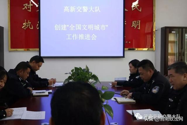 为认真贯彻落实11月15日市公安局创建全国文明城市迎检工作推进会精神,11月18日上午,高新交警大队召开创建全国文明城市工作推进会。各科室负责人、各中队长参会,王晓文大队长对创建“全国文明城市”迎检工作作出重要指示。