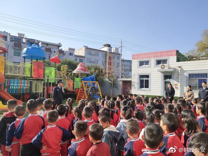 近日,韩城公安乔南派出所深入辖区幼儿园开展了法制教育讲座。