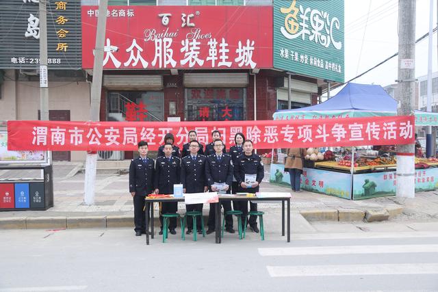 为深入推进扫黑除恶专项斗争,落地推广“12337”智能化举报平台,广泛发动人民群众参与热情,为专项斗争营造良好氛围, 11月20日,渭南市公安局经开分局组织警力在辖区主要路段开展扫黑除恶专项斗争宣传活动。