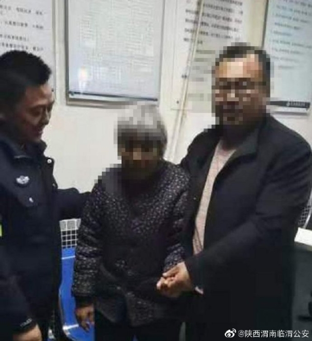 16日晚,陕西渭南临渭公安东风所民警找到了迷路老人的儿子并安全将老人交给其家人。