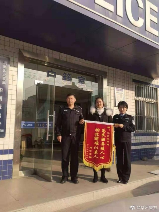 【为民服务暖人心 排忧解难似亲人】邓女士通过亲友介绍,收养了一名男婴,当时夫妻二人未办理收养手续。如今小孩4岁多,因没有户口无法入学,情急之下便向华州派出所求助。民警得知情况后,积极联系民政、福利院等部门,按照法律程序为其办完了所有手续,解决了燃眉之急。近日,邓女士一家给民警送来锦旗以表谢意。