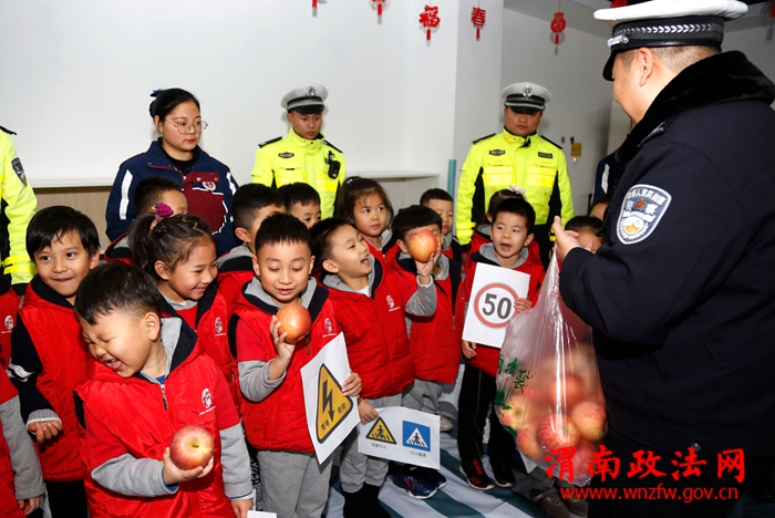渭南政法网(高新交警讯)寒假即将来临,为进一步增强幼儿道路交通安全意识,预防和减少道路交通事故。12月24日上午,高新交警大队民警走进北苑明德幼儿园,给小朋友们上了一堂生动有趣的交通安全课。