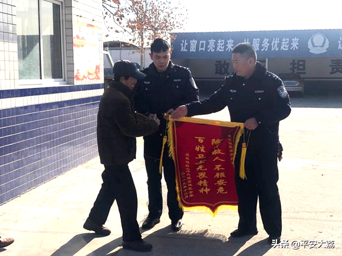 【大荔:耄耋老人被困管道夹隙 民警救助赢得群众点赞】一耄耋老人赶集为走捷径,被困二黄渠两个管道缝隙中,大荔县双泉派出所民警齐心协力成功救助。12月26日,双泉镇南龙池村村民高某把一面印有“险中救人不顾安危 百姓卫士无畏精神”的大红锦旗送到双泉派出所,为民警点赞。