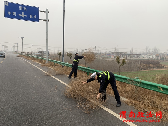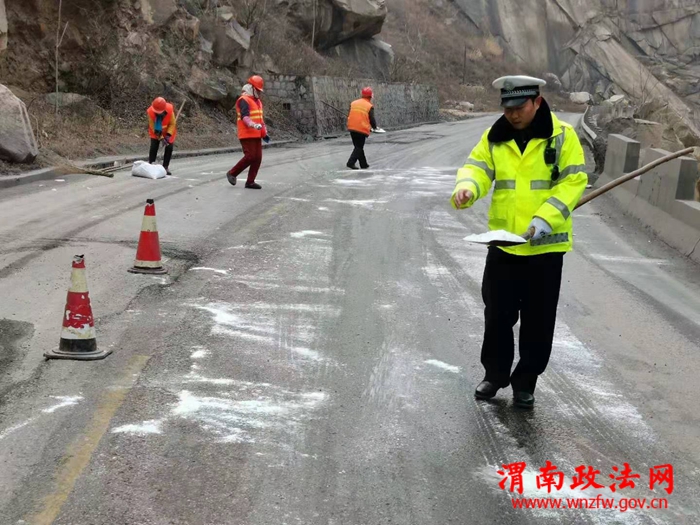 三、消除恶劣天气防御难点,管控防范“齐”并重。近期辖区雨、雾、霾、雪天气频发,大队进一步建立健全《恶劣天气下道路交通安全管理工作预案》,优化完善应急预案,严格落实统一指挥调度,切实加强预判预知预警能力。一是加强值班备勤,针对低温天气对行车安全的影响和雨雪天气路面湿滑等实际情况,加强固定执勤、路面流动巡逻和实时监测相结合,确保一旦遇到恶劣天气,能够及时联系及时出警及时处置。二是加强巡逻管控,在242国道华金公路易结冰路段增设交通安全警示标志,对结冰道路进行交通疏导、抛洒融雪剂,并通过开启警灯、交警喊话等方式加大对过往车辆的安全提示引导,必要时果断采取分流、交通管制等措施,最大限度地减少因天气原因导致的交通事故发生。