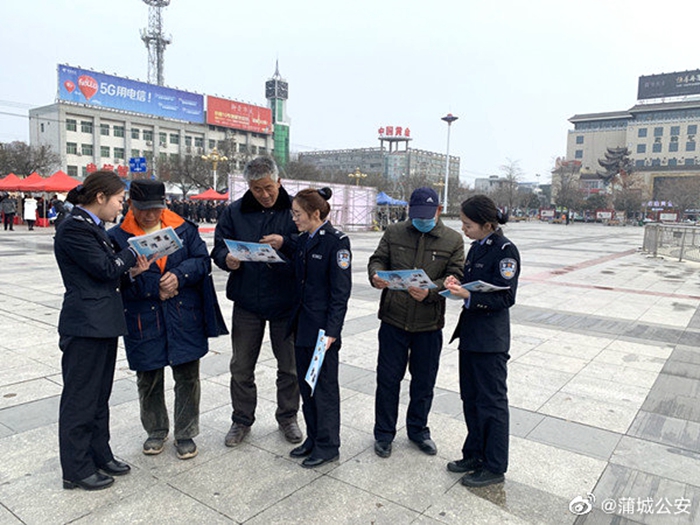蒲城公安110接警员们在县城中心广场开展了“不忘初心110、共建共治享安宁”主题宣传活动。