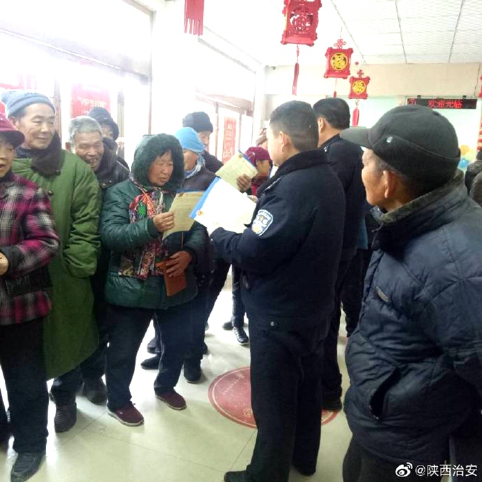 1月13日,渭南大荔韦林所民警通过发放宣传单、现场解说等形式,向辖区讲解电信诈骗的常用手段以及预防电信诈骗的相关知识。