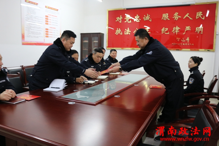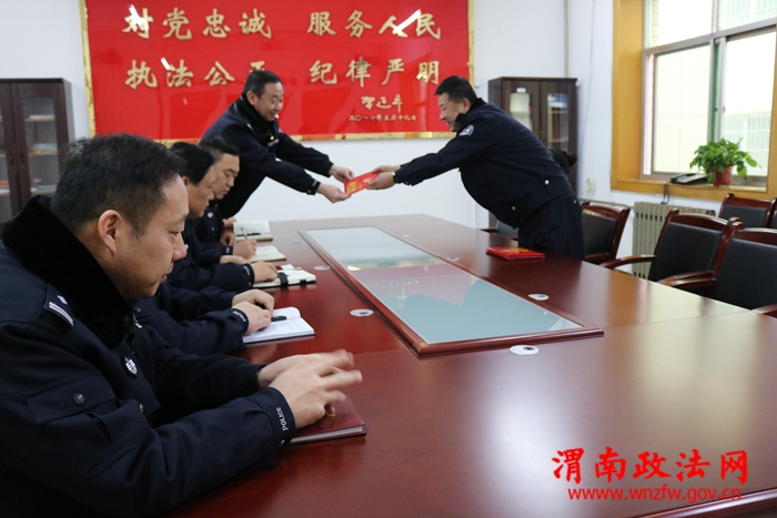 渭南政法网(市交警支队讯)1月15日下午,渭南市交警支队副政委王平、监察督察处处长白红艳来到高新交警大队,为全体民警送来新年祝福。