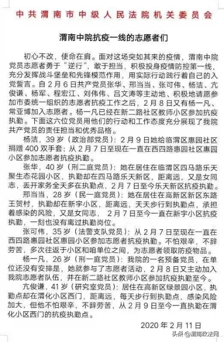 面对疫情,渭南中院党员干警义不容辞冲锋在前