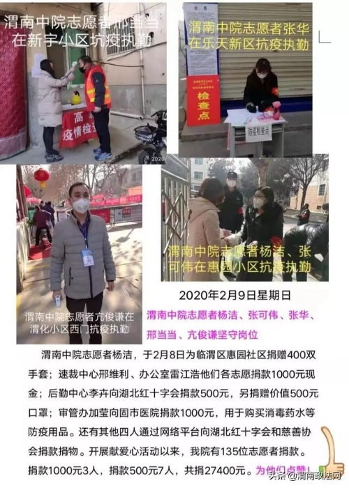 每次在重大灾害、灾难面前,总能看到渭南中院共产党员、先进青年的身影。在疫情面前,市中院全体法官、干警、共产党员以实际行动践行着社会责任,用逆行者的无畏守护群众的生命和健康,我们坚信,万众一心、众志成诚,一齐传递期望和坚强,就一定能够打赢这场没有硝烟的阻击战。
