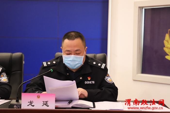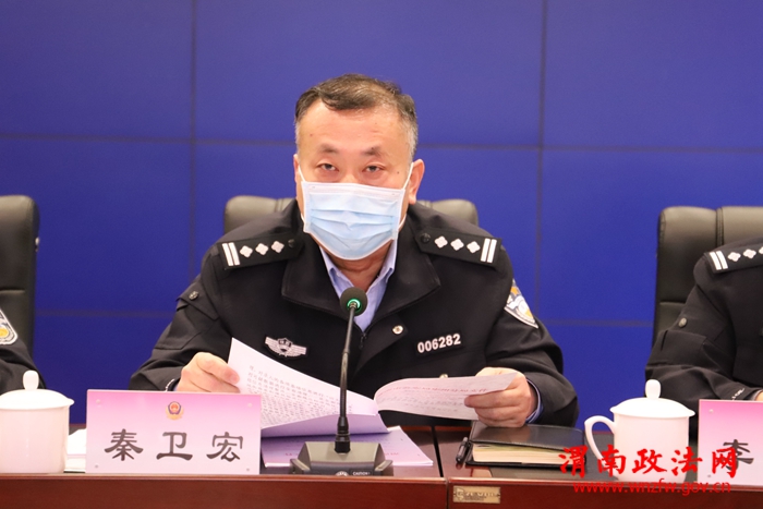 会上,党委副书记、政委秦卫宏宣读了《维护疫情期间社会稳定工作方案》和《一标三实基础信息采集百日攻坚会战实施方案》,党委委员、政工监督室主任龙延宣读了《关于疫情期间深入推进“百万警进千万家”活动实施意见》。
