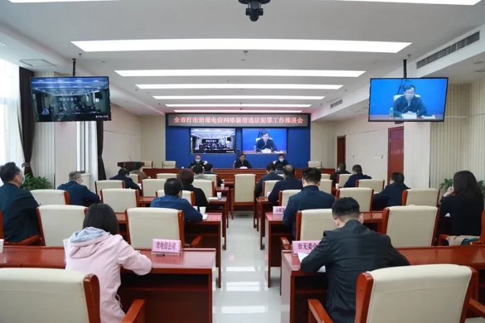 为认真贯彻落实“3.19”全省打击治理电信网络新型违法犯罪工作联席会议和胡明朗副省长讲话精神,分析当前渭南市工作面临的严峻形势,对全市2020年打击治理电信网络新型违法犯罪工作进行再安排、再部署、再推动,3月24日,全市打击治理电信网络新型违法犯罪工作推进会在市公安局召开。