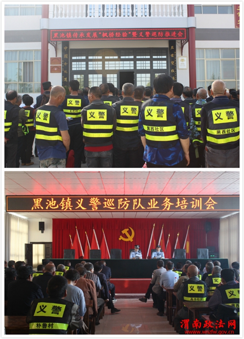 渭南政法网(通讯员 王丹)为进一步传承和发展“枫桥经验”,打造“巡、防、管、宣”四位一体的专业化义警巡防队伍,夯实“矛盾不上交、平安不出事、服务不缺位”的新时期群众工作模式,4月29日,合阳县公安局黑池派出所召开传承和发展“枫桥经验”暨义警巡防推进会。推进会由派出所指导员樊小康主持,黑池镇人大主席邹晓刚、副镇长李世伟、县公安局副局长曹红亮、派出所所长惠晓鹏、社区(村)党支部书记、治保主任等200余人参加。