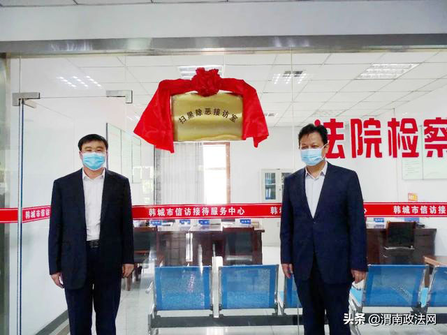 5月9日,扫黑除恶接访室揭牌仪式在韩城市信访接待服务中心举行,市委书记褚锦锋,市委常委、政法委书记卫高民共同为扫黑除恶接访室揭牌,市委副书记杨澎主持仪式并致辞,副市长宁双喜介绍了接访室组建情况。