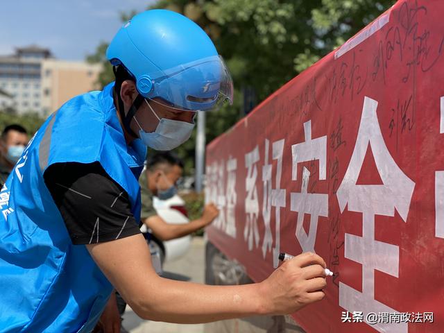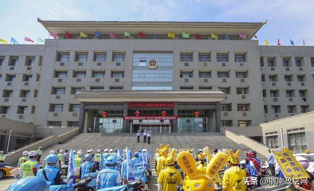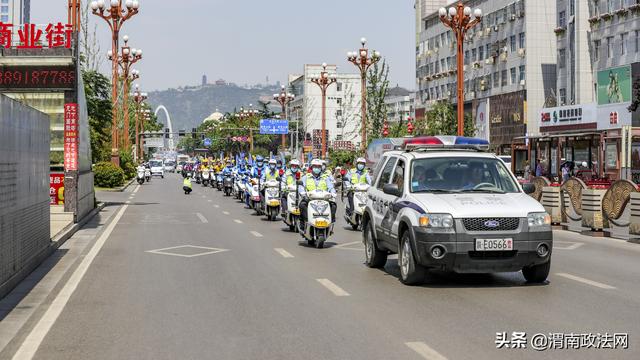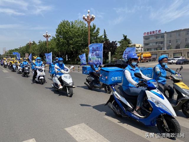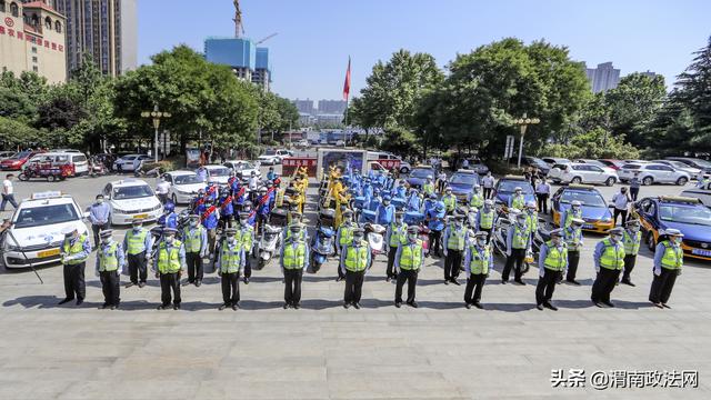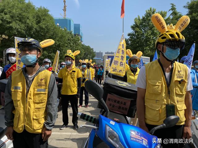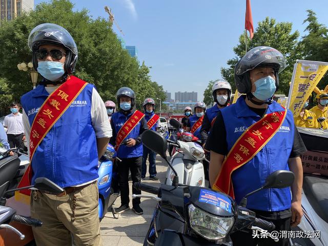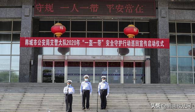 渭南政法网(通讯员 陈君君)为深入推进“一盔一带”安全守护行动,督促驾乘人员佩戴安全头盔,系好安全带,预防和减少事故的发生,牢固树立安全发展理念, 5月29日上午,韩城市公安局交警大队举行 2020年“一盔一带”安全守护行动巡回宣传暨第19个全国安全生产宣传月启动仪式。市公安局交警大队摩托车组以及来自韩城的出租车、外卖、驾校、摩托车出售商家各行业代表100余人一起参加了启动仪式。仪式由交警大队副大队长刘俊阳主持。