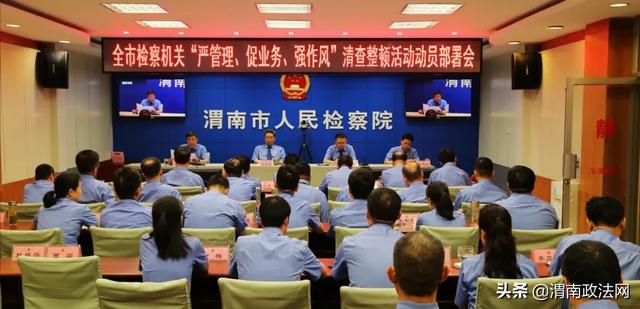 会上,市检察院党组成员、副检察长雷鸣传达了省院杨春雷检察长批示精神;市检察院党组成员、市纪委监委驻市院纪检监察组组长杨晓民宣读了《全市检察机关“严管理、促业务、强作风”清查整顿活动实施方案》,对全市检察机关清查整顿活动进行了安排部署;韩城市院、华州区院表态要通过这次清查整顿,切实推动管理更加规范、业务更加均衡、作风明显好转;最后市检察院党组书记、检察长李逸强动员部署讲话。
