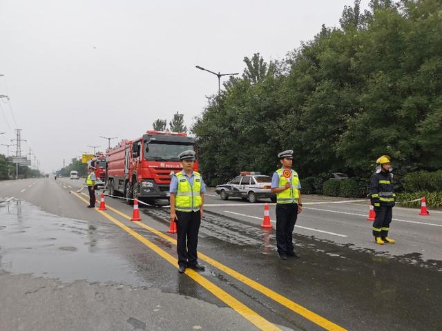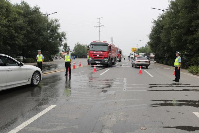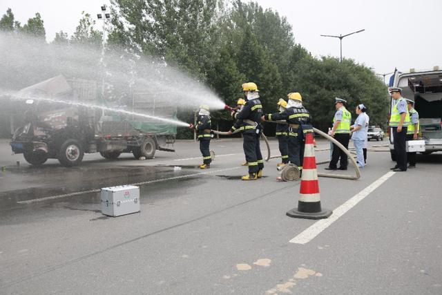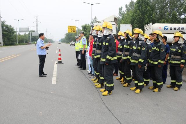 为认真吸取“6.13”浙江温岭槽罐车泄漏燃爆事故惨痛教训,强化各部门联勤联动,确保快速有效的处置道路交通事故,最大限度地保护人民群众生命安全。7月28日下午,高新交警大队结合“减量控大”工作安排部署,以“全警实战大练兵”为契机,积极联合医疗救助、消防救援、危化品运输公司等相关部门开展事故应急演练。