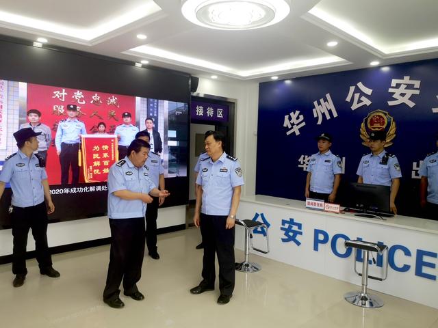吴新利主任一行还深入华州派出所检查指导"枫桥式派出所"创建工作。首先,吴主任对所里的"枫桥式派出所"的创建工作进行检查,要求做实党建引领,群防群治,矛盾纠纷化解,基层治理创新等各项工作。其次,师局长为吴主任讲解了华州派出所"一室两队"模式的警务机制改革,弥补了社区警务的短板,解决了工作中的重点、堵点、痛点。最后,吴主任查看了所里的调解室,他强调,矛盾纠纷化解是创建"枫桥式派出所"的一项重点工作,推进人民调解工作,化解社会矛盾,是人民群众的迫切要求,目的是真正做到"矛盾不上交,平安不出事,服务不缺位"。