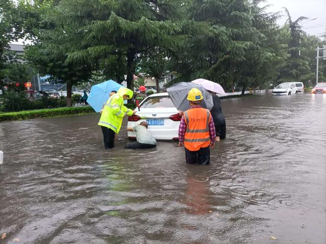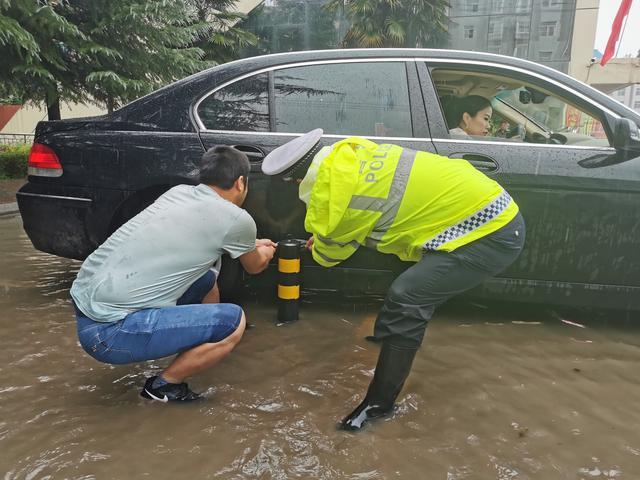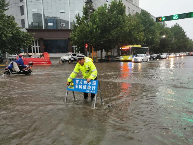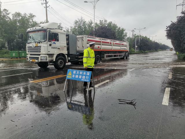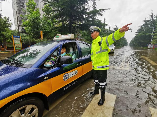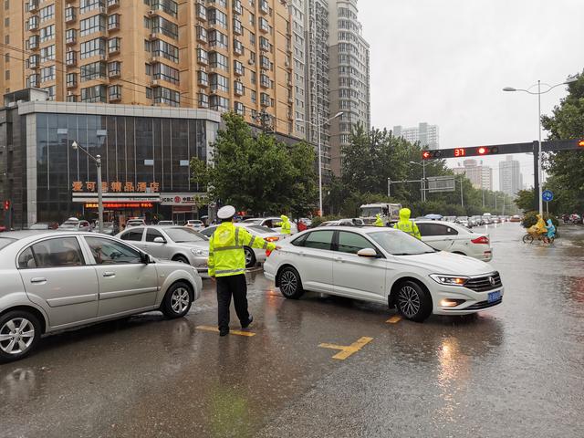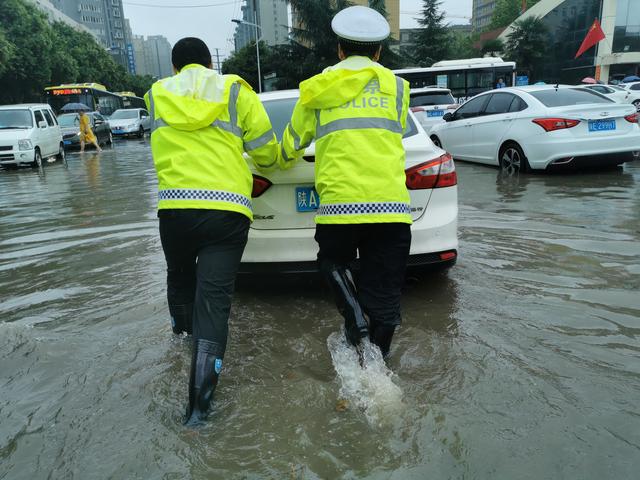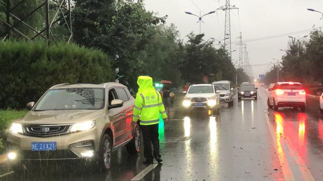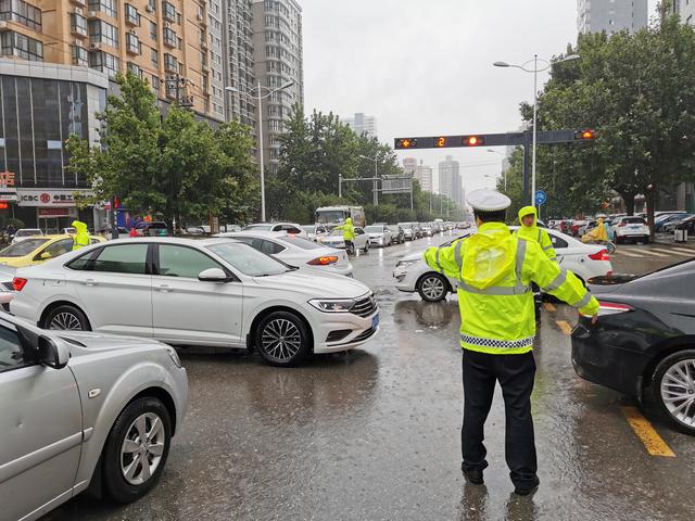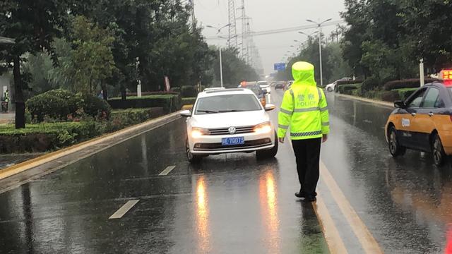 8月7日,渭南市高新区出现强降雨天气,部分路段有积水,给广大机动车驾驶人以及行人出行带来极大不便。为保障恶劣天气下道路交通安全、有序、畅通,防止雨天道路交通事故的发生,高新交警大队全警上路,用实际行动为人民群众出行保驾护航。