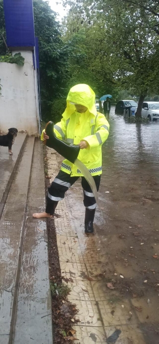 雨中,高新交警充分发扬不怕苦、不怕累的精神,纵然全身湿透,也没有丝毫怠慢,积极帮扶受困群众,为积水中抛锚车辆实施救援,并及时提醒广大驾驶人,雨天开车上路一定要谨慎慢行,听从交警指挥。