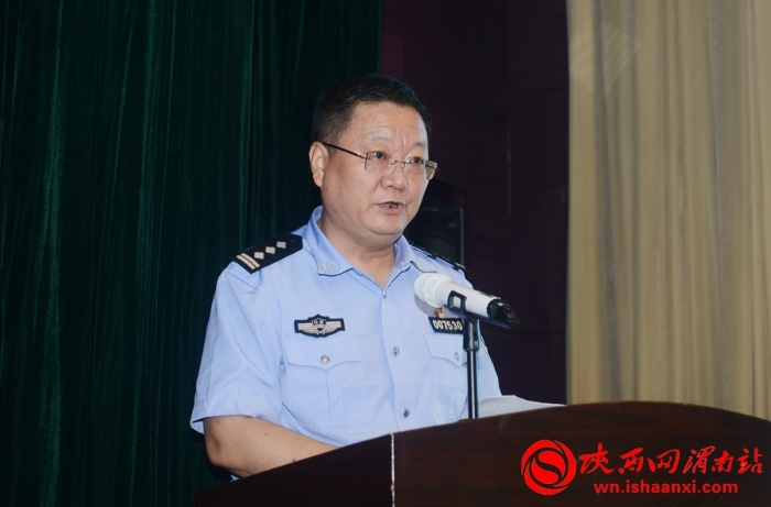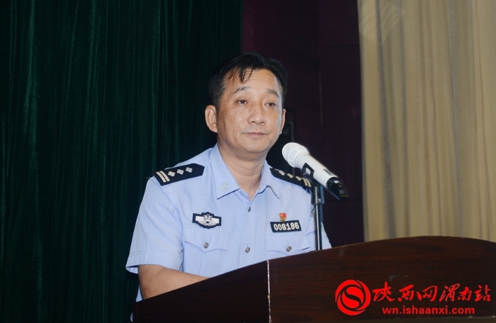 渭南市副市长、市公安局局长杨建琦作动员讲话。记者 张耀锋 摄