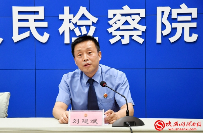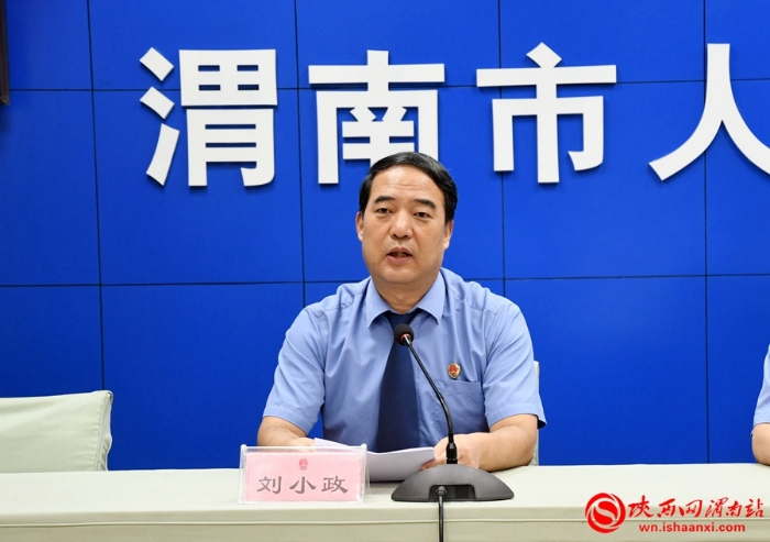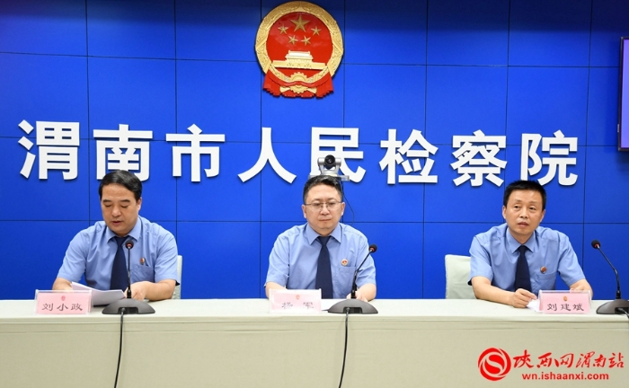 渭南市人民检察院党组副书记、副检察长杨军,市检察院党组成员、政治部主任刘小政,市检察院案管办主任刘建斌参加发布会。记者 马华莉摄