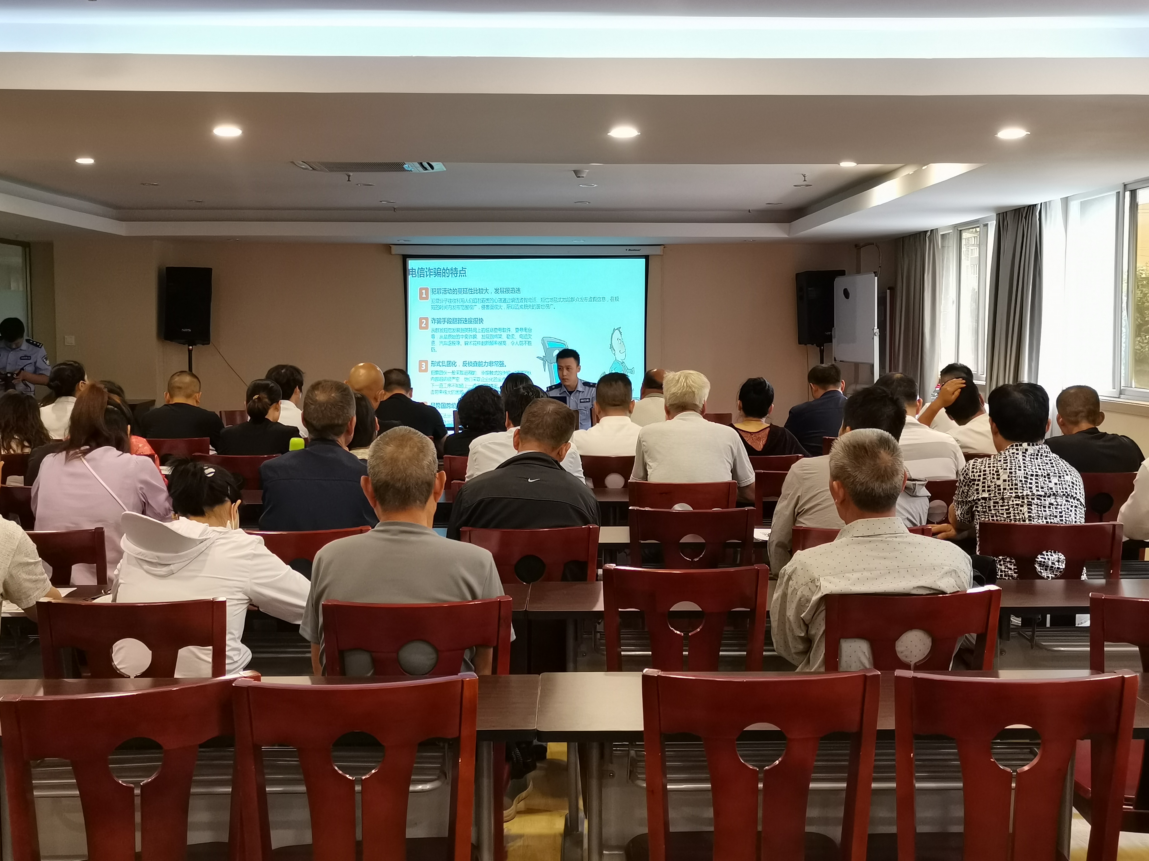 培训会上,崇业路派出所民警刘冰涛首先通报了今年以来辖区内电信网络诈骗的案发情况,详细分析了目前出现的新型涉及电信网络诈骗招数,通过身边的实例教大家如何识别不法分子实施电信诈骗犯罪的手段和伎俩,并现场传授防范措施,以此加强辖区群众对电信诈骗的防范、鉴别和自我保护意识。