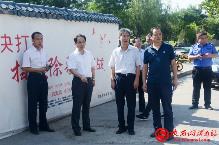 陕西网讯(记者 张耀锋)8月26日,渭南市人大副主任孙云峰金水路调研指导包联路段全国文明城市创建工作。市司法局局长种逢康参加检查。
