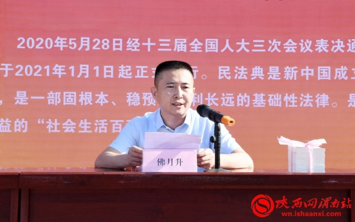 佛月升指出,民法典的出台,是全面依法治国进程中具有重大意义的标志性事件。根据指示精神,渭南市也将民法典的学习宣传活动列为一项重要工作,市委依法治市办联合市委宣传部、市司法局共同制定了渭南市民法典学习宣传活动方案,成立了市县两级民法典宣传志愿者讲师团,深入开展各类宣讲活动110余场,在全社会形成学习宣传民法典的积极氛围。