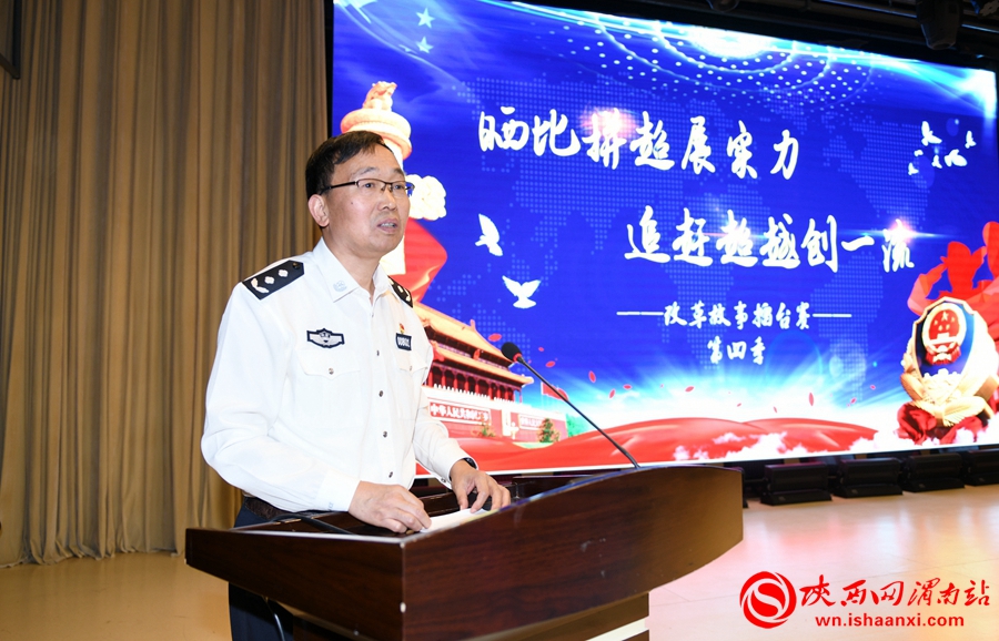 陕西网讯(记者 许艾学)晒比拼超展实力,追赶超越创一流。9月25日,渭南市公安局举办了第四季全市公安机关改革故事擂台赛,展示交流全市公安民警立足岗位、破解难题、服务发展的创新故事,渭南市副市长、市公安局党委书记、局长杨建琦参加了活动。