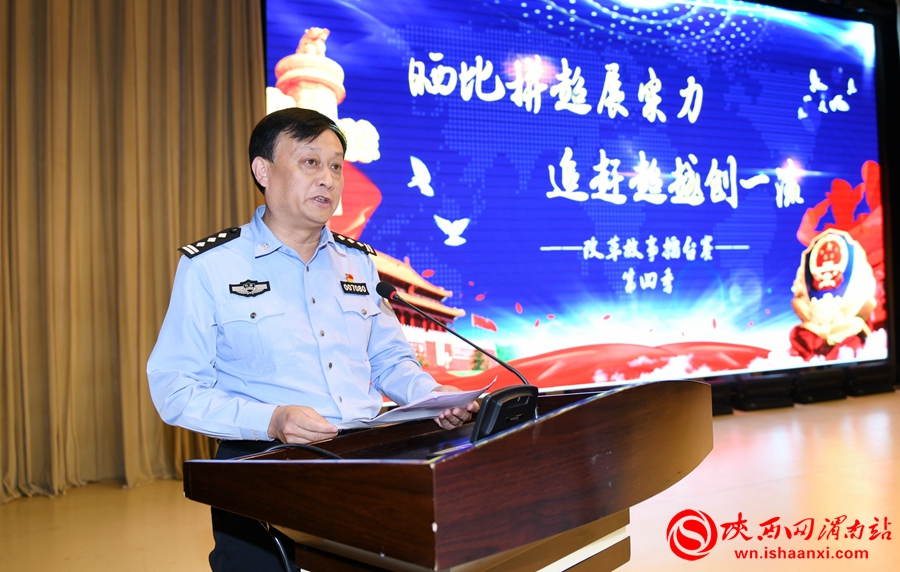 渭南市公安局党委委员,政治部主任吴新利宣读了全市公安机关优秀改革创新项目和先进个人的表彰决定。记者 许艾学 摄