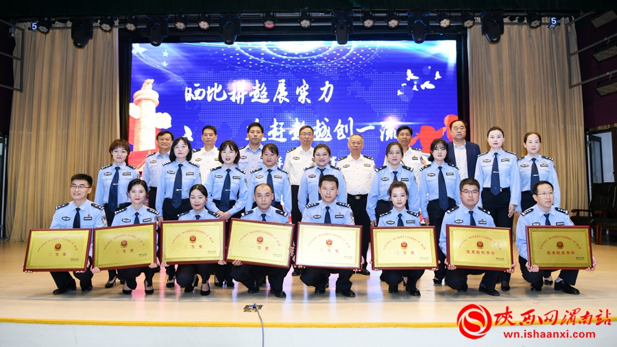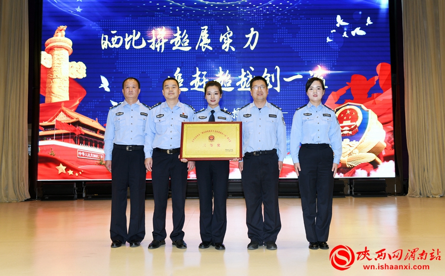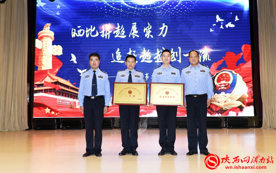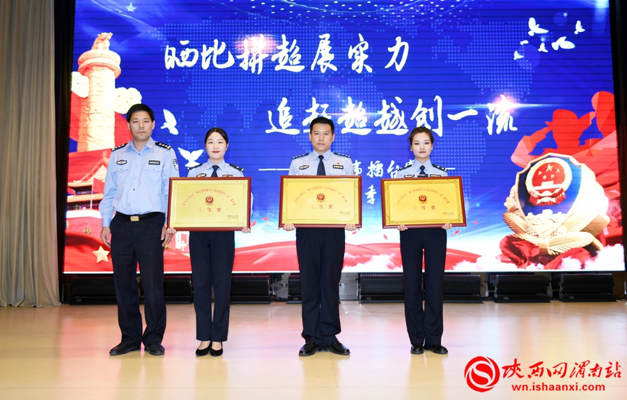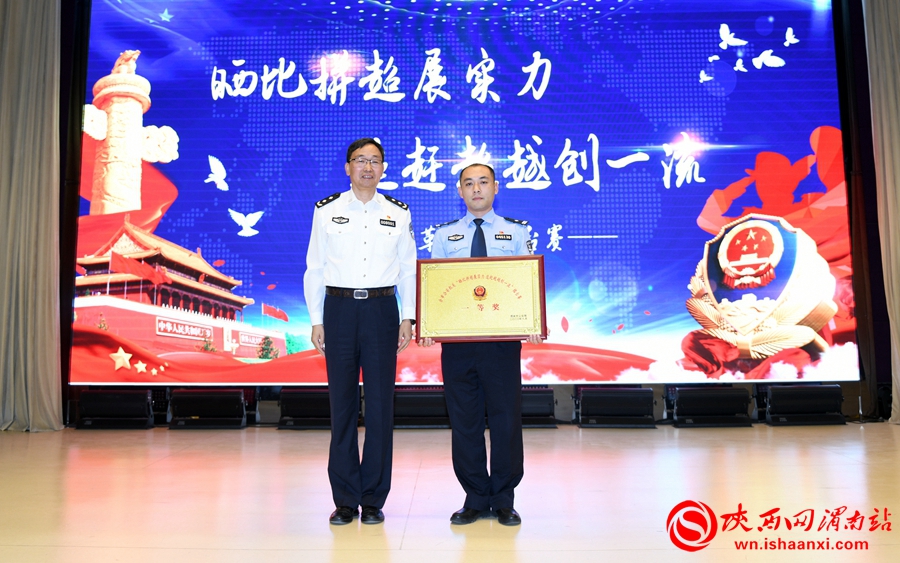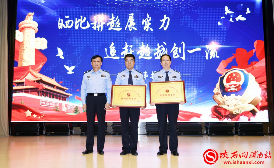 市公安局党委委员,政治部主任吴新利为优秀组织奖大荔县公安局、合阳县公安局颁奖。记者 许艾学 摄