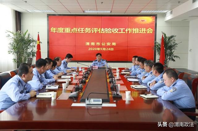 渭南政法网(市公安局讯)9月24日下午,市公安局党委委员、政治部主任吴新利主持召开年度重点任务评估验收工作推进会,回顾总结去年以来省市各项重点目标任务完成情况以及上半年重点工作进展情况,剖析问题短板,研究下一步推进措施。市公安局各处、支队主要负责人、考核联络员参加会议。