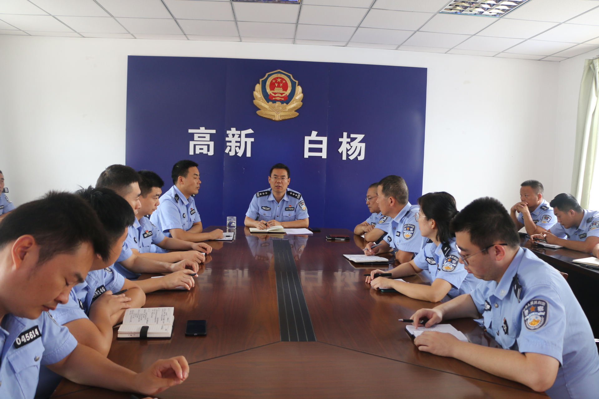会上,高新分局党委委员、白杨派出所负责人田震首先组织全体人员认真学习传达了上级相关会议精神,以及高新分局 “双节”安保工作部署要求。并结合上级会议精神,对开展节前及节日期间安保各项工作进行了再次安排部署,提出了“六个再来一遍”的具体工作要求:即矛盾纠纷再排查一遍,重点部位再检查一遍,消防安全隐患再排查一遍,特行、人员密集场所再检查一遍,大型活动再检查一遍,校园安保再加强一遍。要求全体人员进一步提高政治站位、强化服务大局意识,扎实落实各项工作措施,全力确保节日期间辖区社会治安秩序稳定。会上还对节日期间值班巡逻备勤、节日纪律等工作进行了安排部署,要求严格落实值班备勤制度,加强节日期间纪律作风要求,确保队伍纪律不出任何问题。