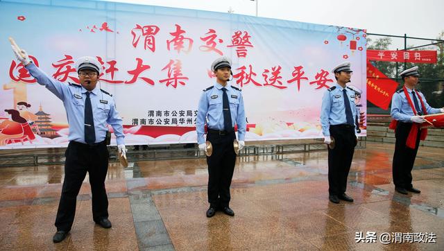 2020年10月1日,渭南市公安局交警支队联合华州分局交通管理大队开展“国庆赶大集 中秋送平安”活动,持续推进“一盔一带 平安守护”行动。通过有奖问答的互动方式向群众赠送安全头盔,宣传驾乘摩托带好安全头盔、乘坐小轿车系好安全带的重要性,引导群众遵守交通法规,自觉做文明交通的践行者和传播者。